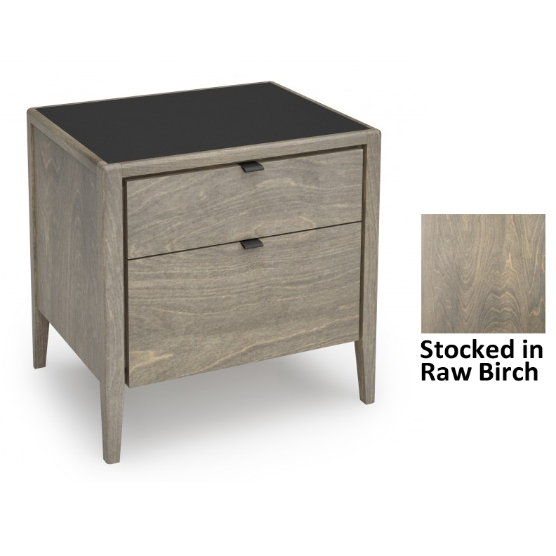 This nightstand, finished on all four sides, features two drawers. It comes with a black synthetic leather handle and top.Read More