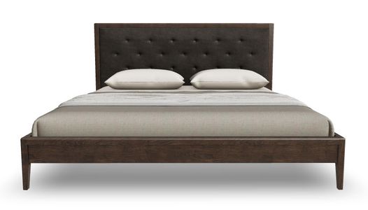 Stocked in king-size with smoked birch wood and Everglade upholstery, but can be customized with special order