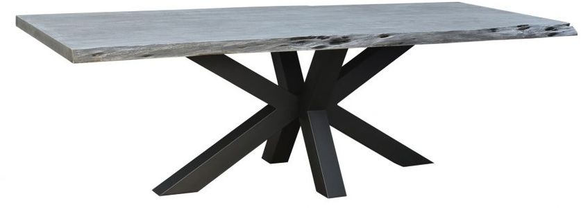 True to its namesake, the Edge Dining Table features a live edge. Thick slabs of solid acacia wood add a natural component to the grey stained wood. A solid iron base adds a contemporary modern twist.Read More
