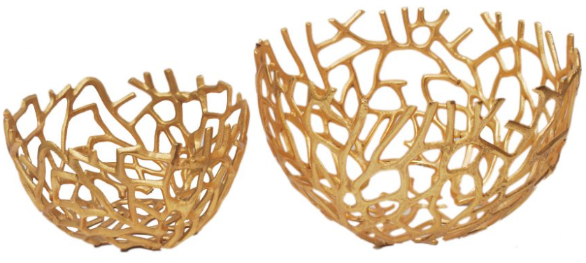 Set of two aluminum bowls in a gold finish. These bowls have an unique design and will add subtle sophistication to any room.Read More