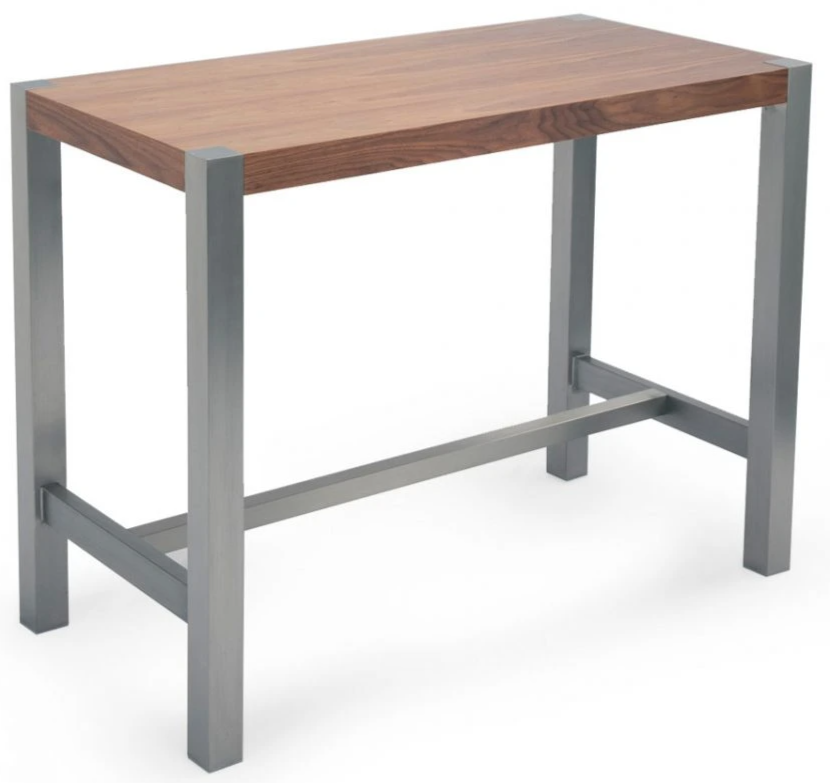 At Moe’s, we firmly believe that the home provides an environment of comfort and positivity. This belief is exemplified in the detail and care we give to our products. We strive to keep our stores warm and inviting; welcoming customers to come and nourish their desire for home décor. Pub style table with a contemporary twist. MDF and polished stainless steel construction.