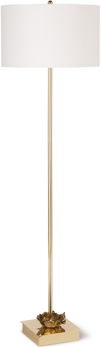 Boasting gold blossom-like accents throughout the base of the lamp and completed with a traditional shade, this piece is a forward-thinking work of art. Graduating metal flowers gilded in antique gold leaf sit atop a glamorous polished gold base.Read More
