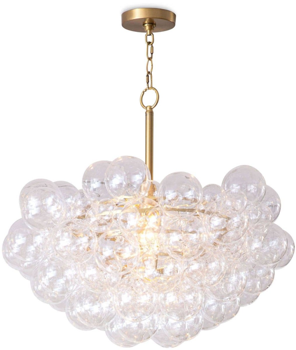 Light and airy, the Bubbles chandelier radiates light through a cluster of hand-blown glass globes. The tiered metal frame lends a whimsical modern touch to a kitchen, entryway, or foyer.Read More