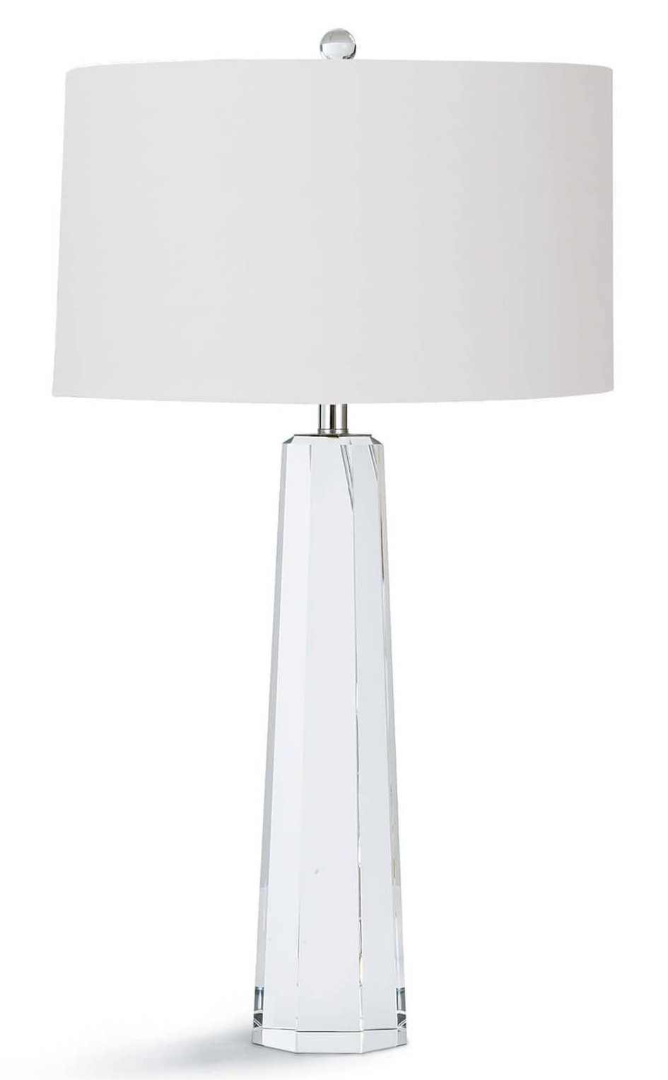 Shed light on the glamorous, contemporary and modern Tapered Hex Crystal table lamp. Featuring a tapered crystal base, a crisp natural linen shade and held in place by a crystal finial, The elegant geometrical profile makes a simple yet stunning statement when viewed from any angle..Read More