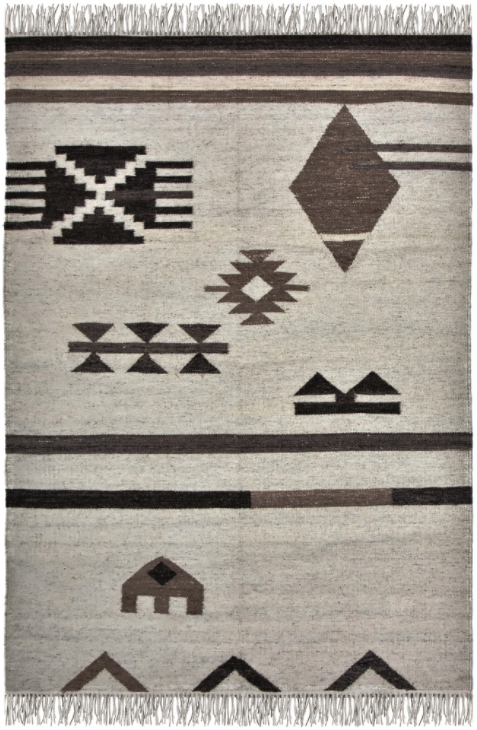 Wool & cotton Kilim style area rug with cream & grey tones.