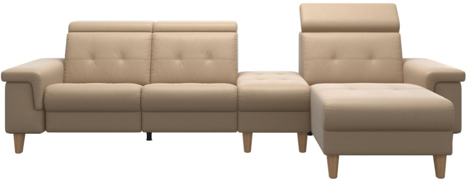 Stressless® Anna is an elegant sectional with the possibility of motorised functionalities in each seat. You can choose between a manual adjustment of the headrest or a built-in power mechanism that unfolds the integrated footrest and provides a highly elevated position of the legs-distributing the body weight more evenly for maximum relaxation.Read More