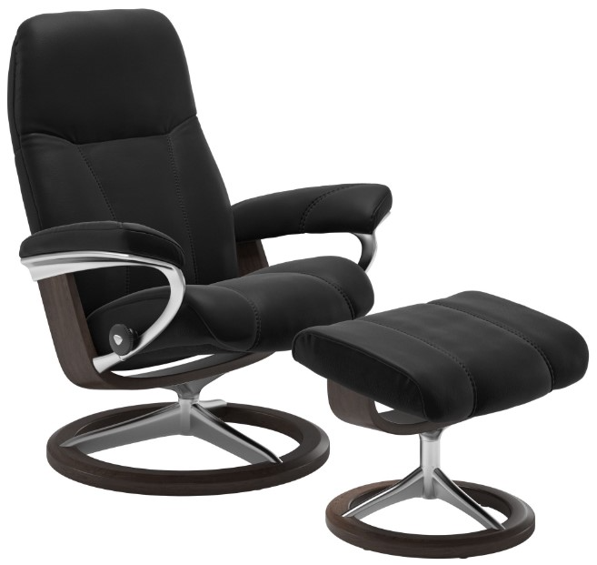 The Stressless® by Ekornes® Customizable Consul Manual Recliner and Ottoman with Signature Base combines classic comfort with sleek design. Its manual reclining system offers personalized support, while the signature base allows smooth movement. Paired with a matching ottoman, this set is fully customizable in various finishes and upholstery for a tailored relaxation experience.Read More