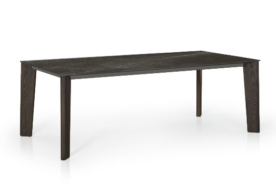 Tabletop: 6 mm porcelain top laminated on a 12 mm thick glass.