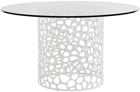 The coral dining table features a round glass top supported by a coral-inspired cast aluminum base in a clean white finish. This dining table's transparent top enhances the sculptural base creating a statement piece that embodies coastal elegance.Read More