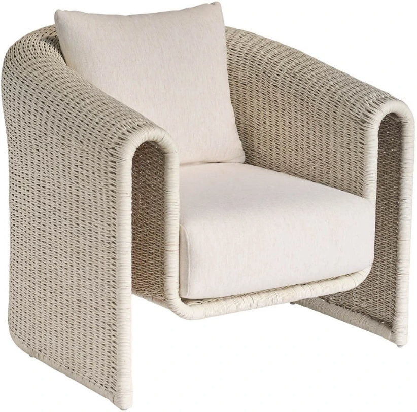 The Key Largo lounge chair combines a white rattan fishbone weave with comfortable nomad snow upholstery. This distinctive chair with 31-inch height and curved silhouette creates a statement piece that brings texture and sculptural form to your coastal-inspired living space.Read More
