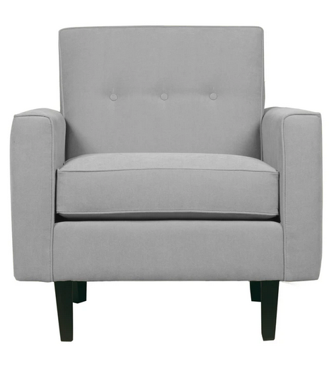 The mid-century inspired Helsinki chair and a half features a tight button tufted back cushion and box seat cushion. Narrow track arms and conical feets complete the look. Available in a selection of fabrics, see store for details.Read More