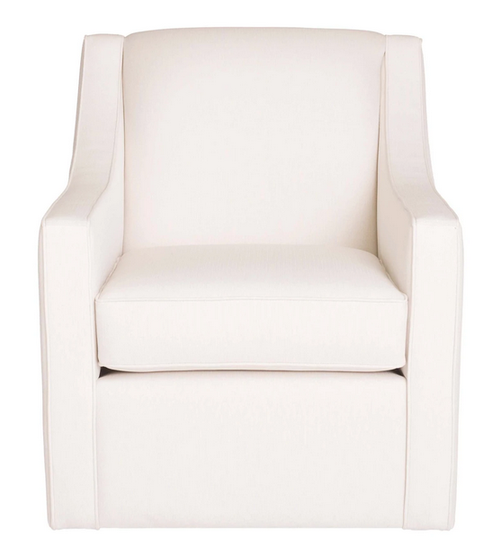The traditional Jenna swivel chair features a sleek, tight back over plush seat cushion, sloping armrests and a swivel base. Available in a selection of fabrics. See store for details.Read More